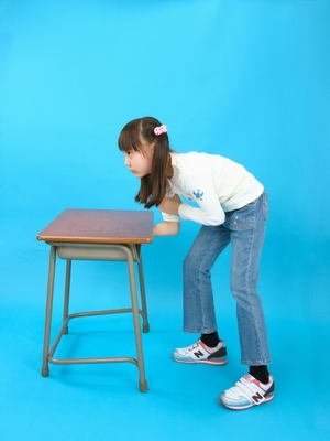 うでを曲げて机を押す
