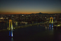 スペシャルライトアップのレインボーブリッジより富士山