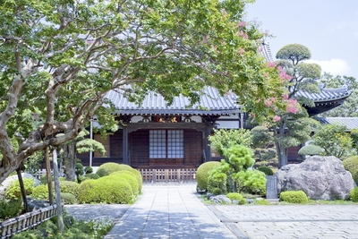 松月院の本堂とサルスベリの花