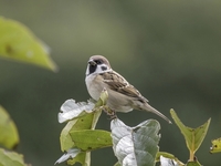 柿の木に留まるスズメ
