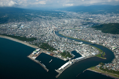 沼津港より沼津駅と沼津市街地
