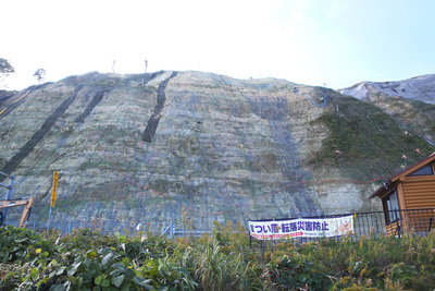 能登半島地震 崖崩れで法面施工の擁壁が残る