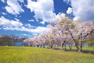 えぼし岩公園の桜とタンポポ