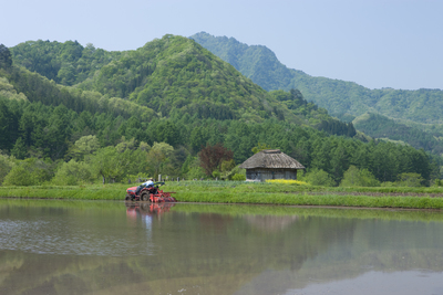 田と小屋と田植