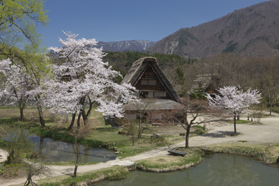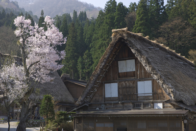 白川郷と桜
