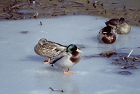 マガモ 氷上で休むペアー