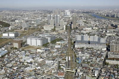 矢向駅周辺と川崎市街 後方武蔵小杉