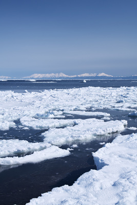 知床連山とオホーツク海と流氷