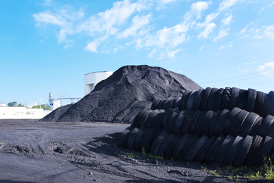 網走港の石炭とタイヤ