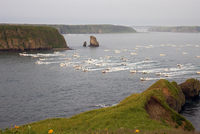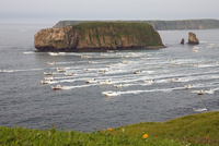 アゼチの岬より望むコンブ漁の出漁風景