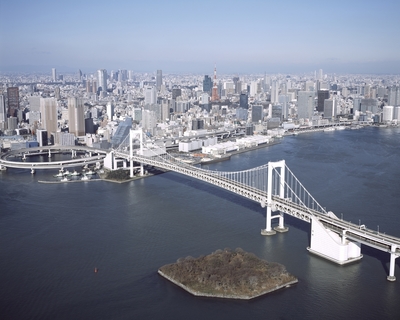 レインボーブリッジから東京湾(右・第六台場と左・鳥の島)
