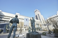 札幌駅と牧歌の像