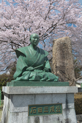 石田三成公の像と桜