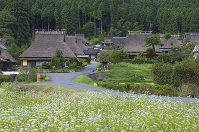 茅葺民家とソバと稲