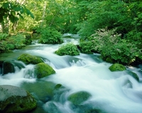新緑の暗門滝・第2滝。白神山地 世界遺産