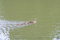 水面を移動するカモの親子