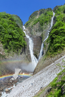 新緑の称名滝とハンノキ滝と虹