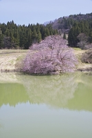 池に写る鏡桜