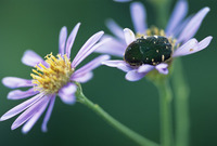 ハルジオンと小青花潜(コアオハナムグリ)