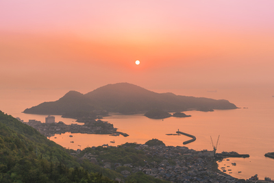 鞆の浦と仙酔島の朝日