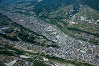 韮崎駅と韮崎市街地より八ヶ岳