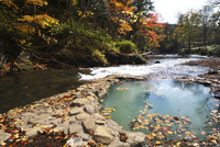 鹿の湯露天風呂とユウヤンベツ川