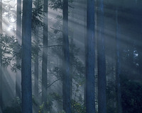 木漏れ日の杉林