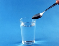 水の入ったグラスをスプーンでたたく