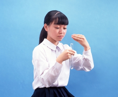 匂いのかぎ方 試験管を3本指で持つ