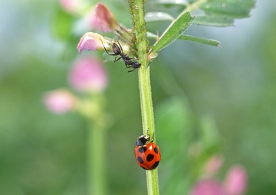 ナナホシテントウ オオクロアリとアブラムシ