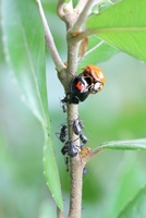 アブラムシを食べるナミテントウ