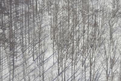 雪の斜面の木立