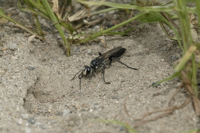 クロアナバチ巣作り