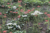 ヒガンバナの花 赤 白