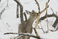 木の皮を食べるエゾシカ