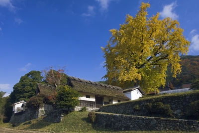 黄葉のイチョウと河原家住宅