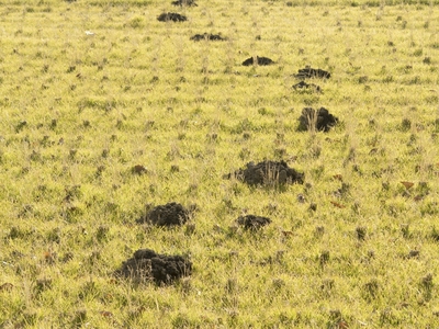 休耕中の水田のモグラの穴