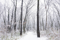 新雪の雑木林へと続く道
