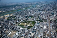 富山城より富山駅と富山市街地