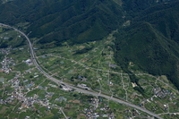 勝沼,一宮の扇状地と中央高速道路(釈迦堂パーキング付近)