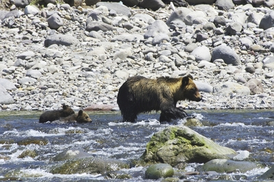 ヒグマの親子と海