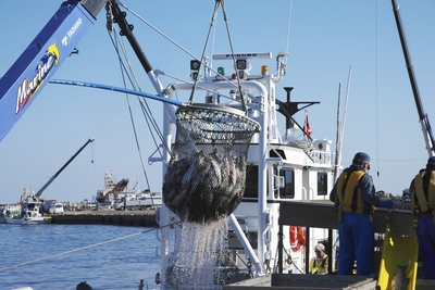 斜里港のサケの荷揚げ