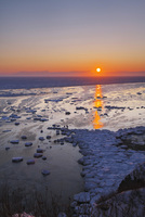 能取岬の流氷と知床連山と日の出