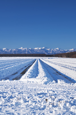日高山脈と畑の雪割り