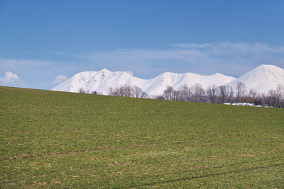 十勝岳連峰と秋まき小麦