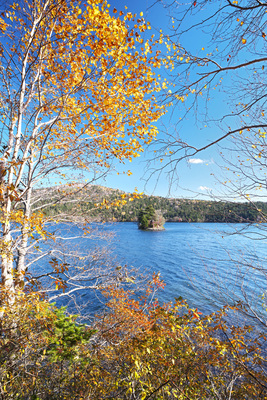 然別湖と弁天島の紅葉