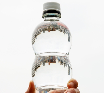 水入りペットボトルで遠景を見る