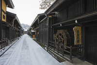 雪の高山の古い町並み