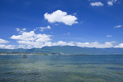 比良山とエリと琵琶湖と雲