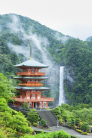 雨の西岸渡寺三重塔と那智滝